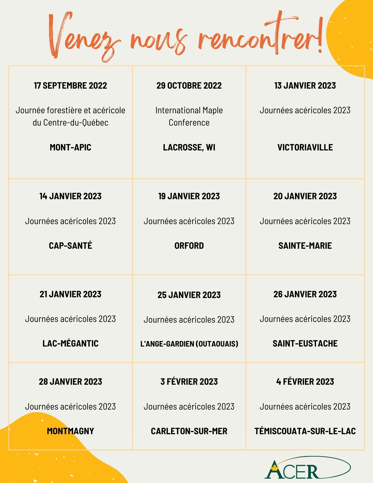 Le Centre ACER se déplace aux quatre coins du Québec! Pour savoir où nous serons, cliquez sur l'image.